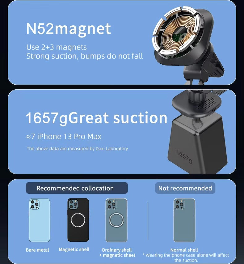 1. 15W fast wireless charging, can also be charged through the phone case.