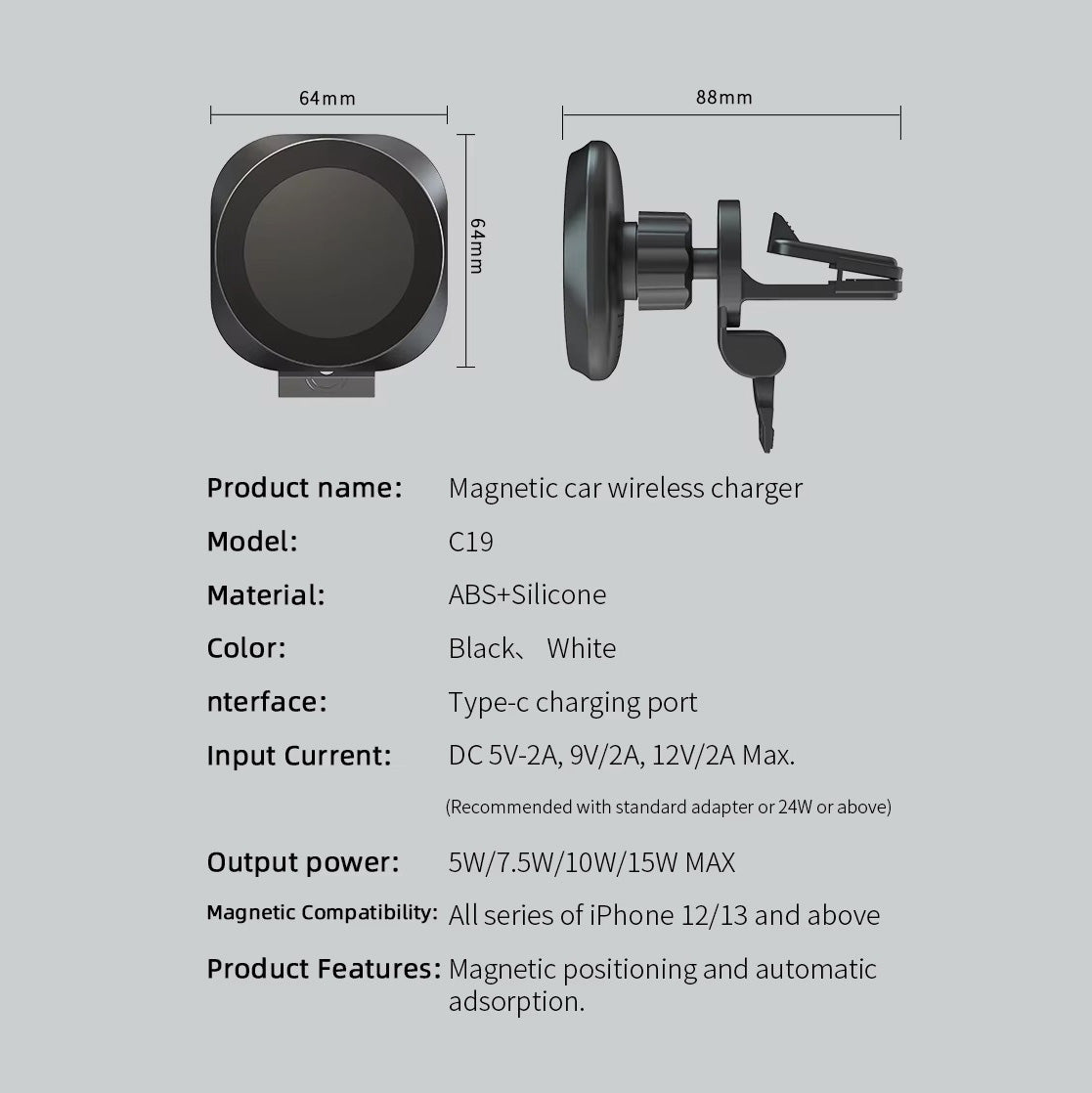 15W Car Mount Wireless Charger Magnetic MagSafe