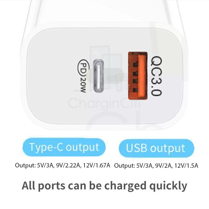 20W USB Type-C Wall Adapter Fast Charger PD Plug