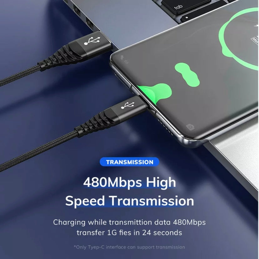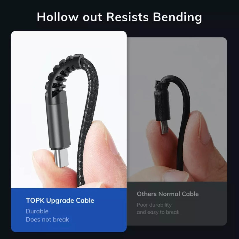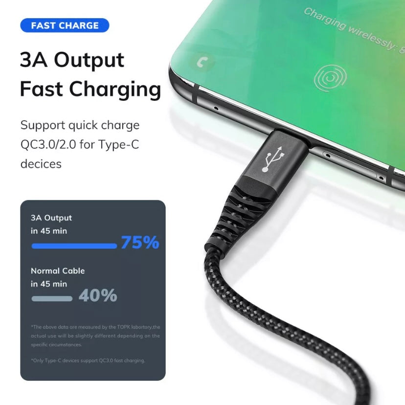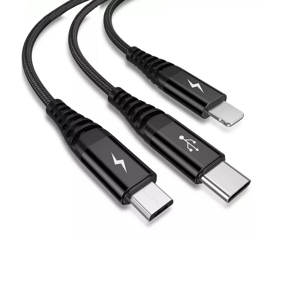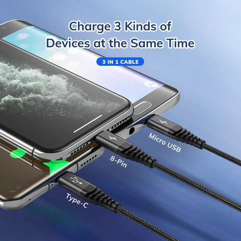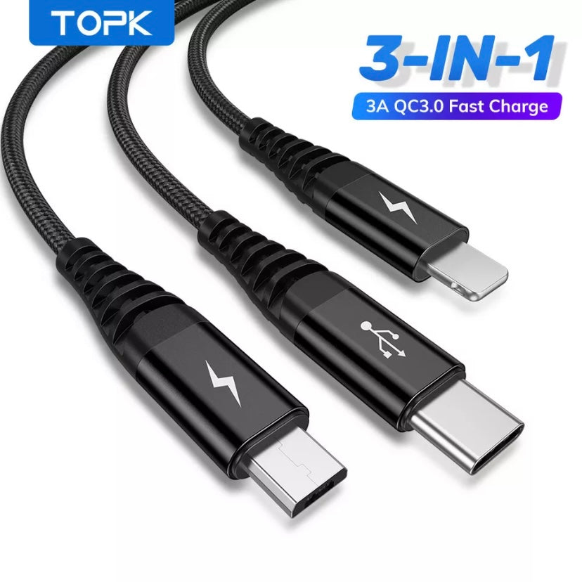 TOPK3-IN-1 3A Fast Charge USB to 8-Pin Micro USB Type C For iPhone iPad Braided
