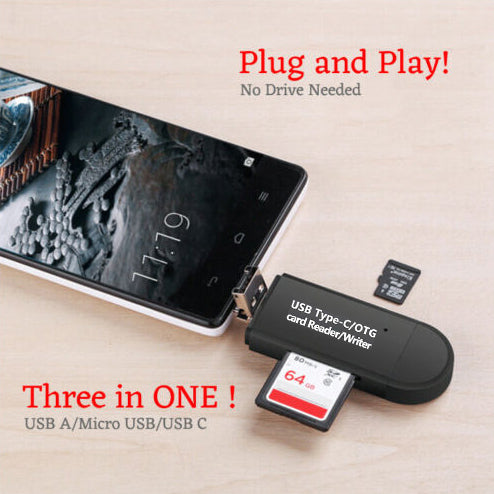 3 in 1 Micro SD Card Reader Adapter to Micro USB Type-C Converter For Phone Tablet