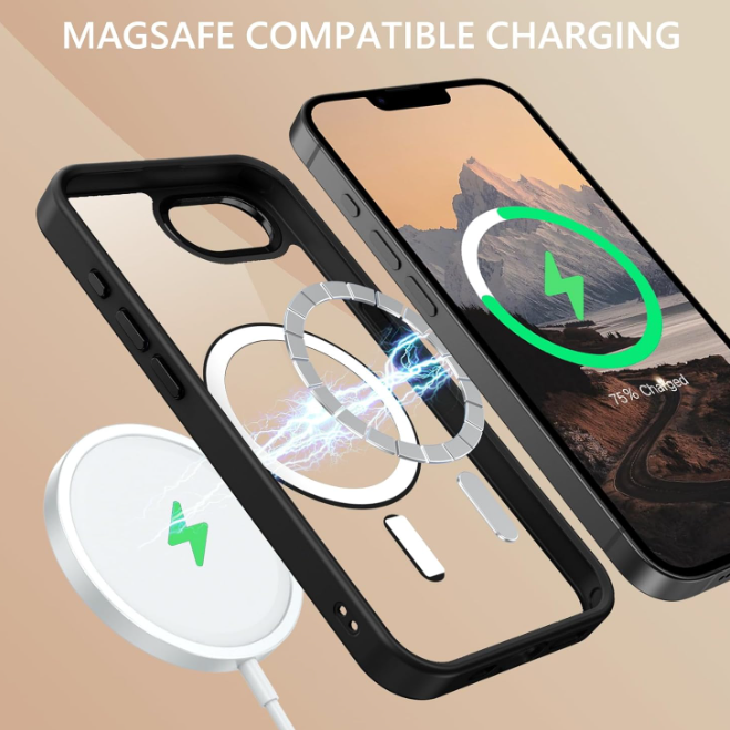 1. Built-in magnets circle automatic alignment with mag safe charger, 360 degree rotation magnetic fast charge.