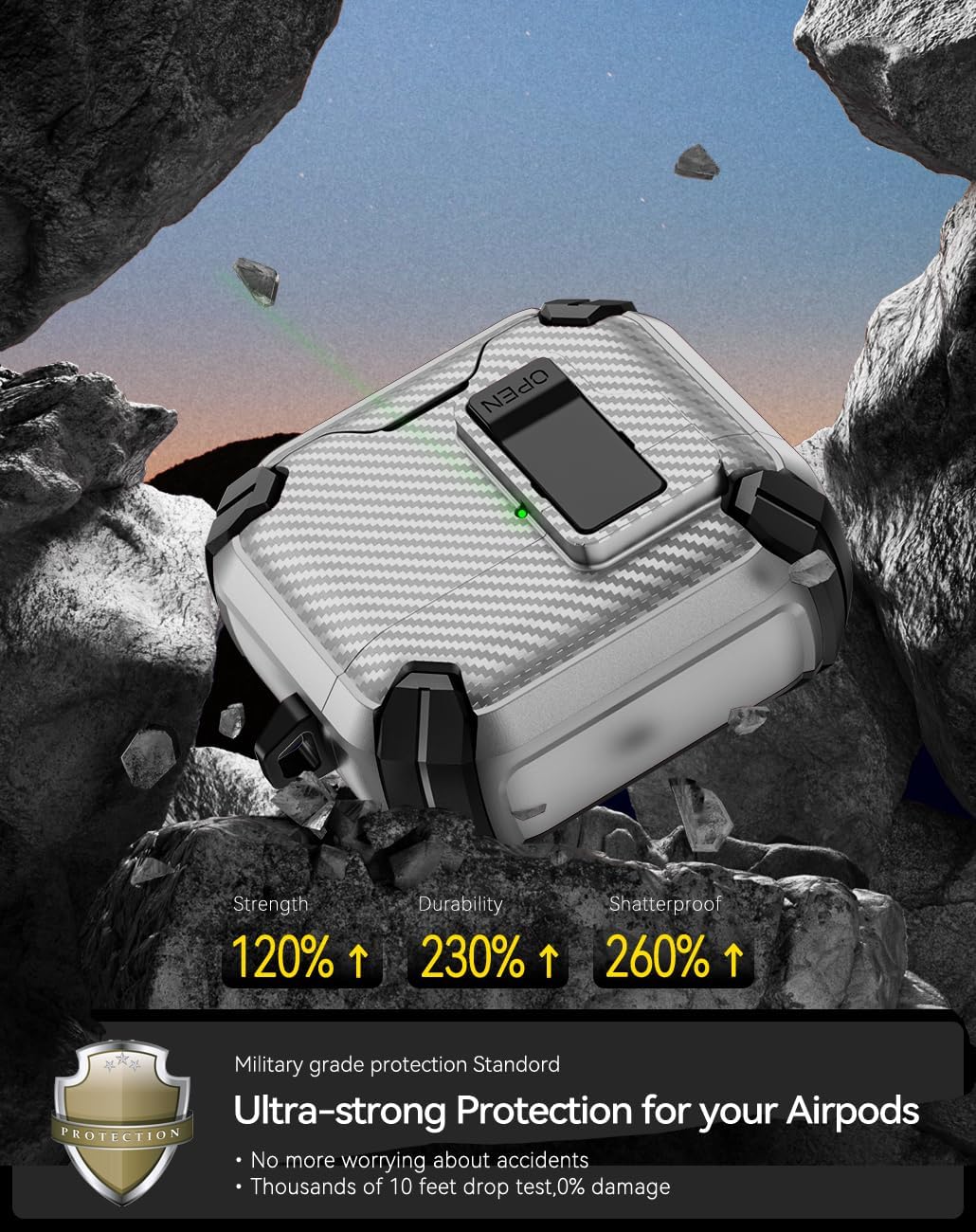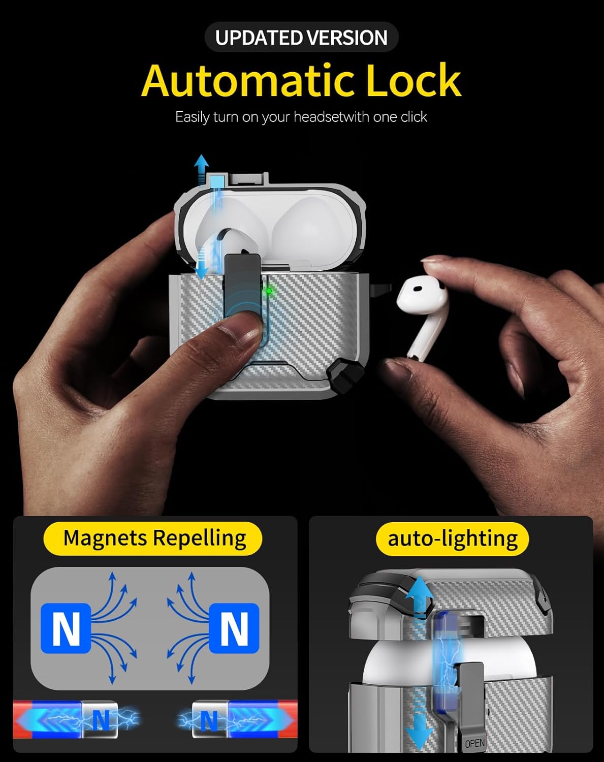 For Airpods Pro 3 (2025) Case with Lock Lid & Stand, Shockproof Protective Cover (Grey)
