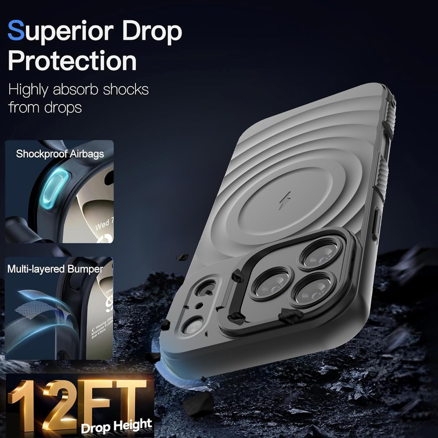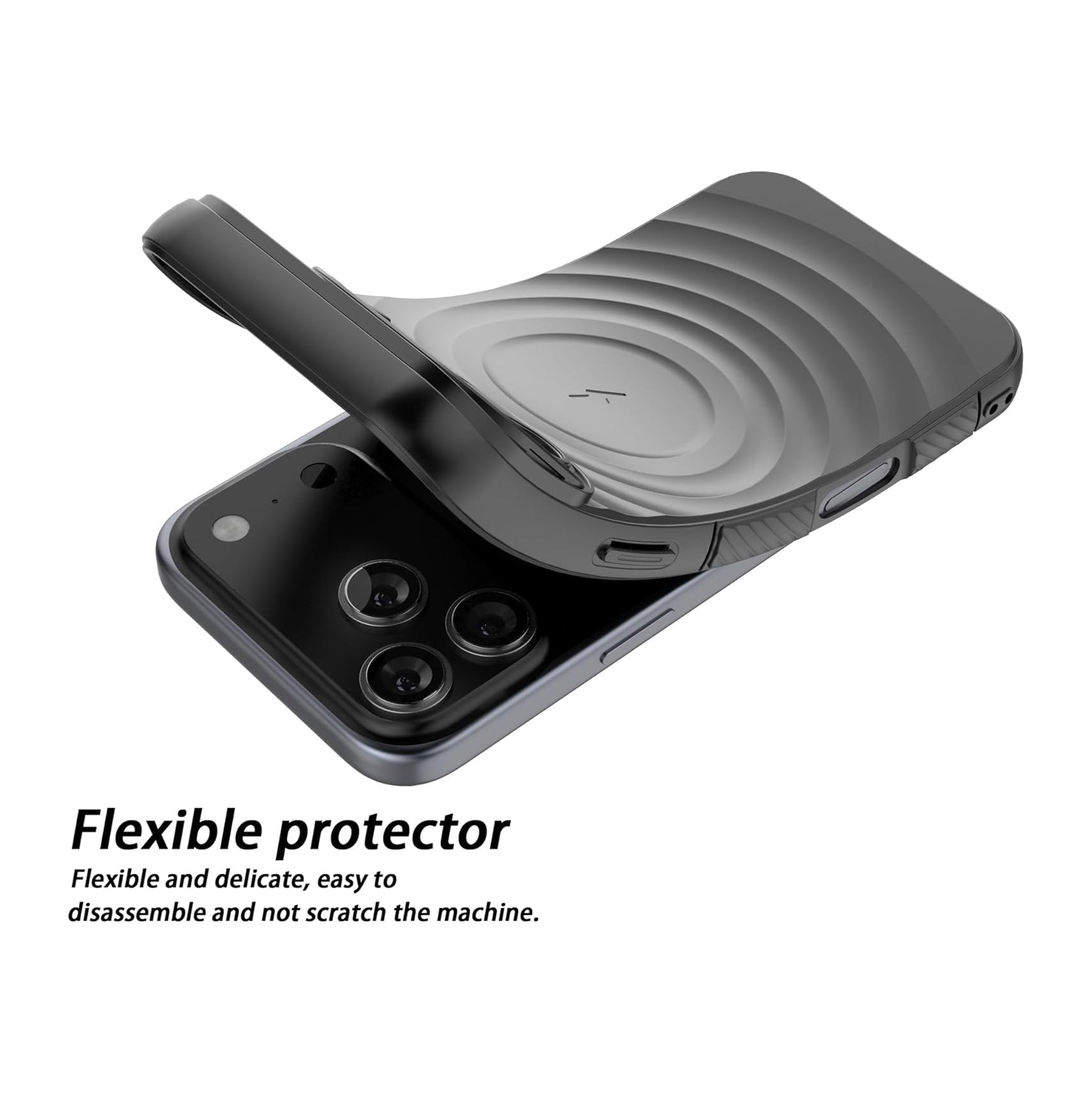 For Apple iPhone 17 Pro Max Magnetic Magsafe Case Back Camera Holder Ripple Cover (Black)