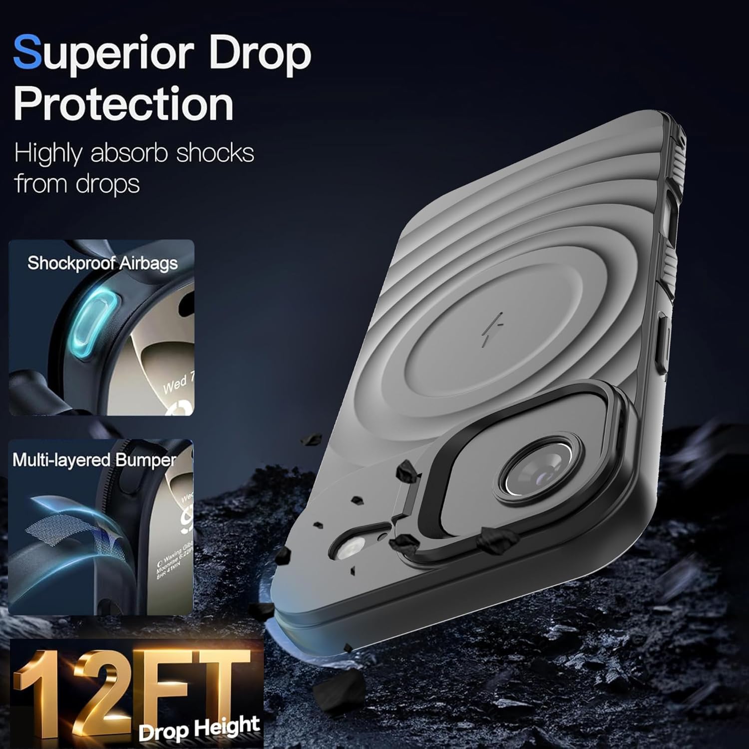 For Apple iPhone 17 Air Magnetic Magsafe Case Back Camera Holder Ripple Cover (Black)