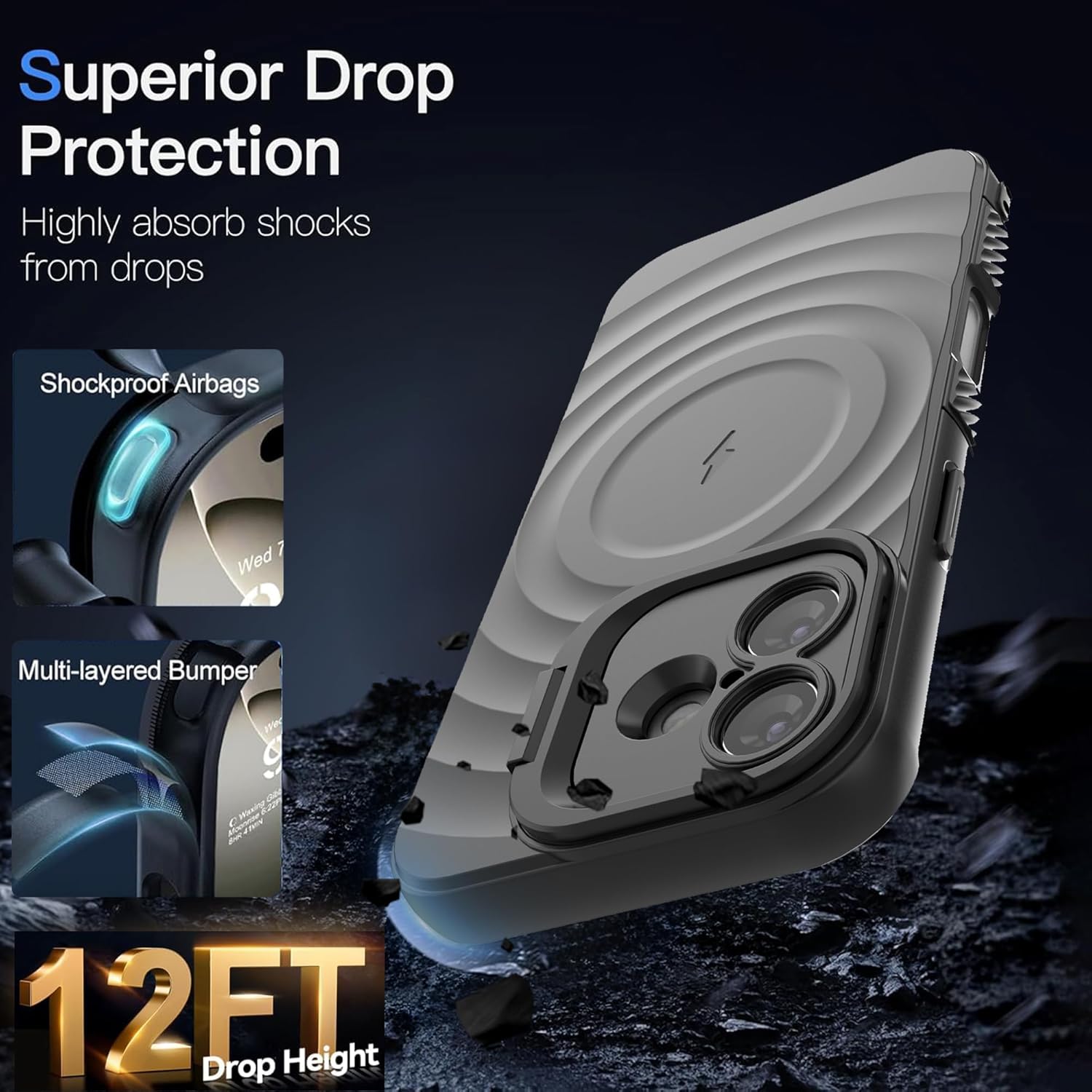 4. Drop Protection: Double-layer shock-absorbing design to prevent damage from drops or impacts.