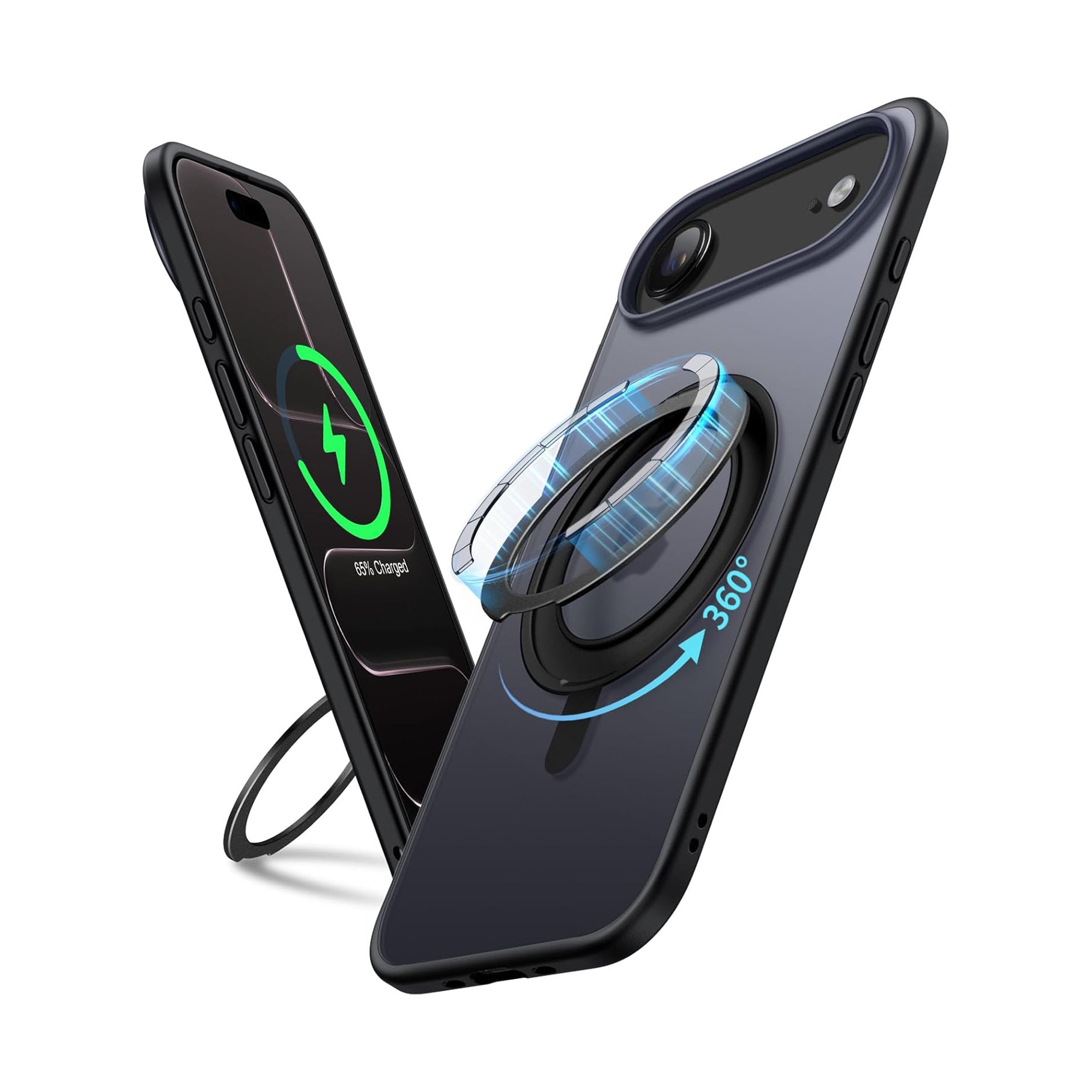 For iPhone 17 Air (6.5") Magnetic MagSafe Shockproof Case Ring Stand Black Cover