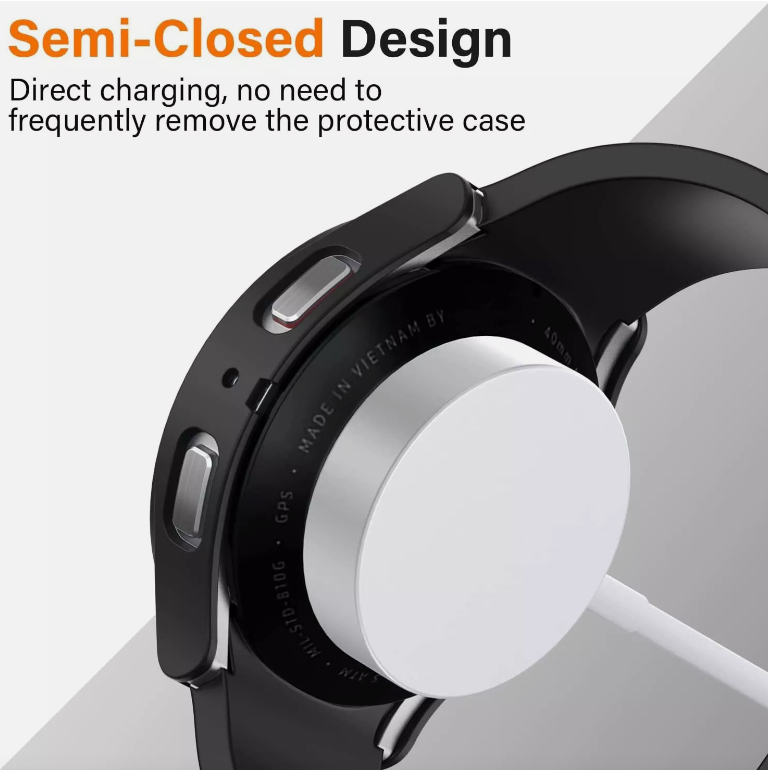 1. Durable watch case with precise openings allowing full easy access to all controls, buttons, sensors and galaxy watch features.