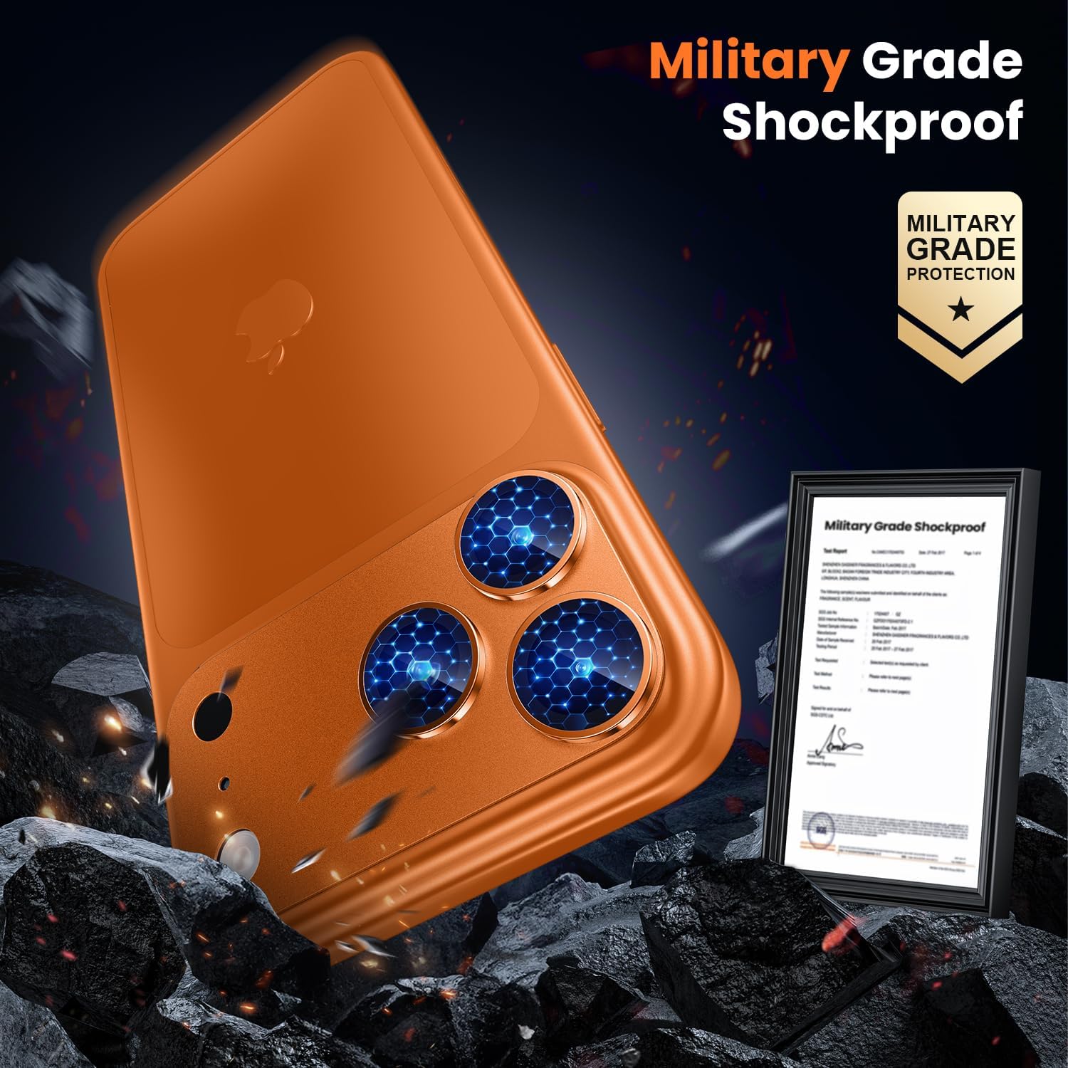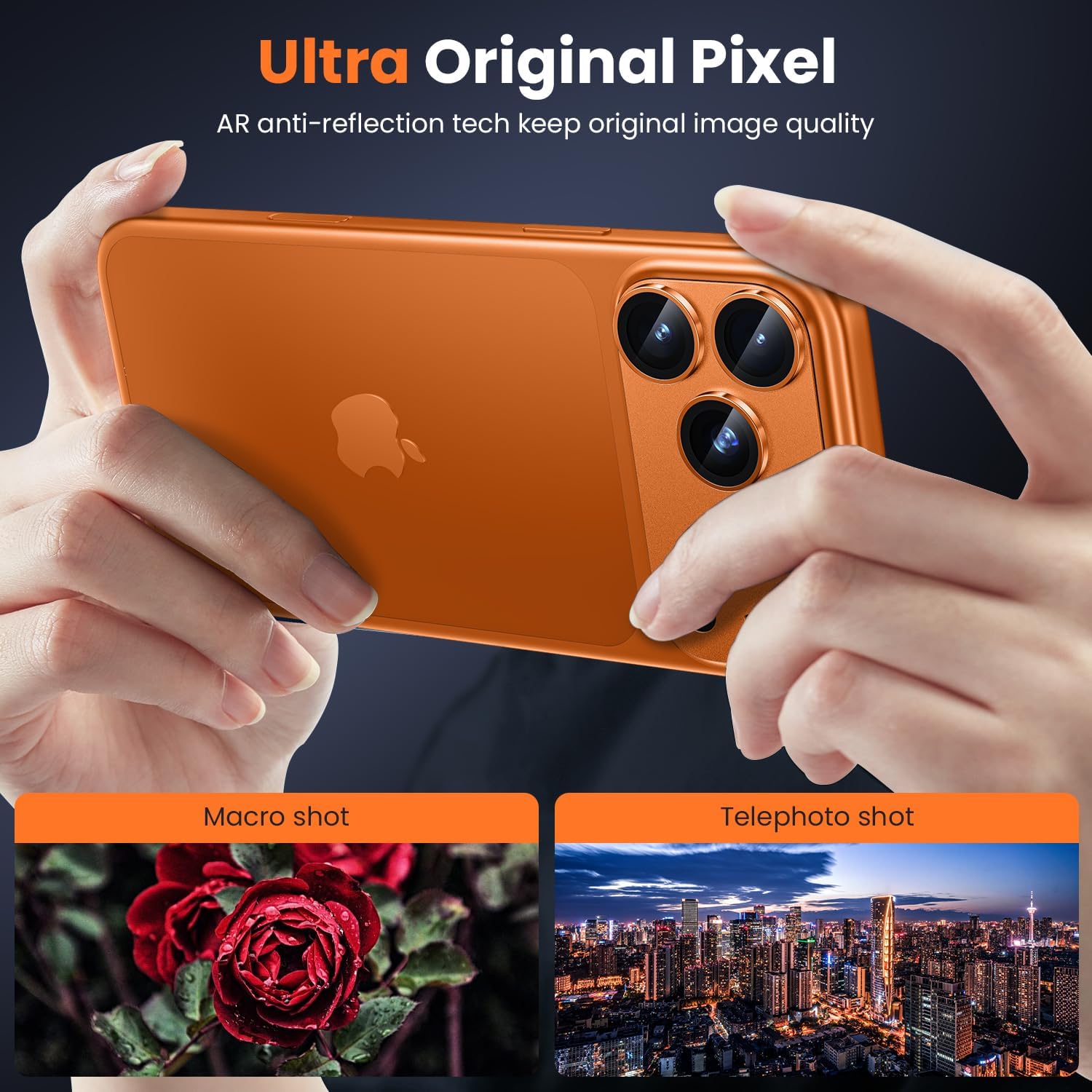 iPhone 17 Pro Max Camera Lens Protector, Military Grade Aluminum Alloy & Tempered Glass, Orange Titanium