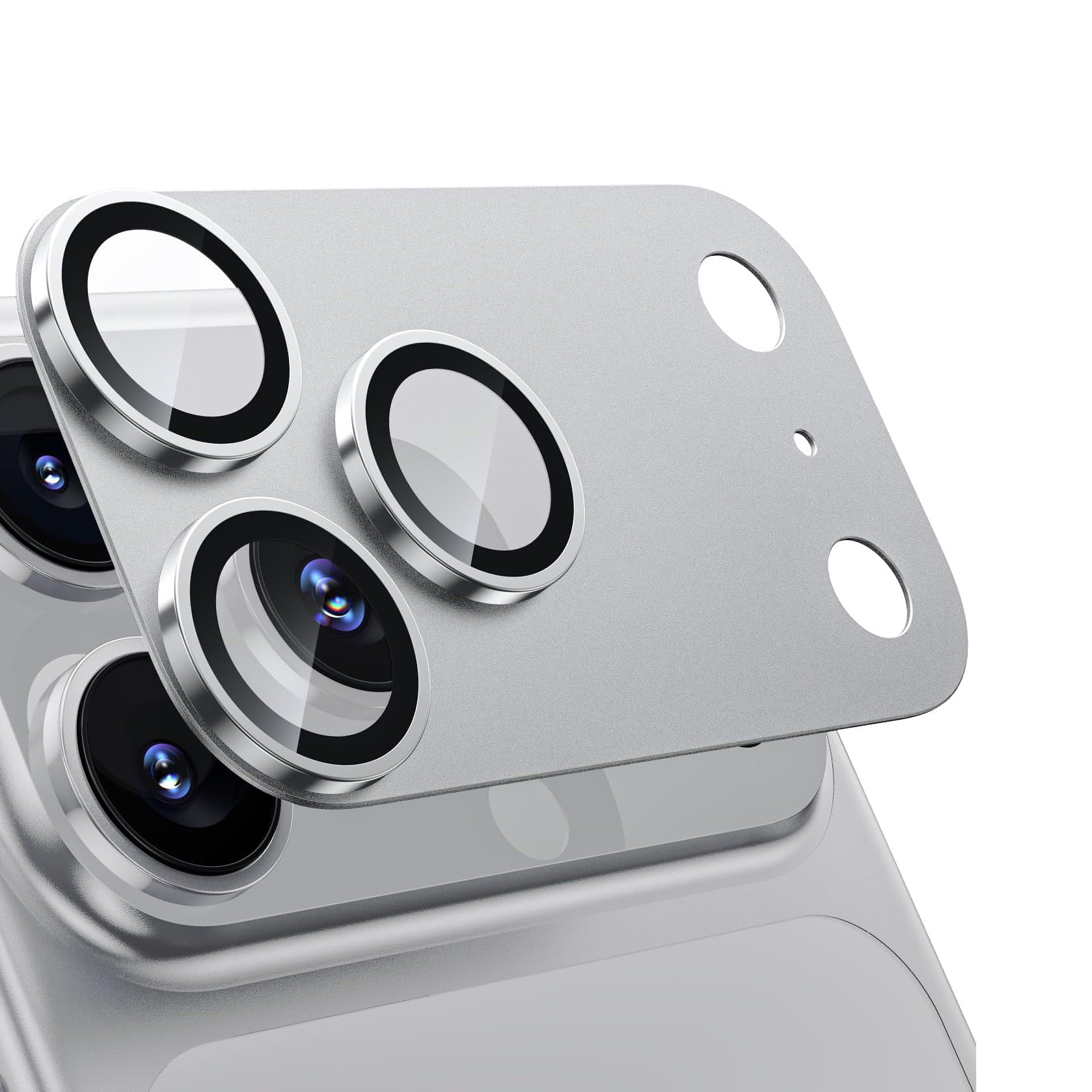 iPhone 17 Pro Max Camera Lens Protector, Military Grade Aluminum Alloy & Tempered Glass, Silver Titanium