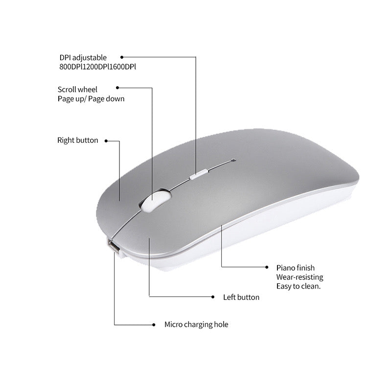 Optical Wireless Bluetooth Slim Rechargeable Mouse for Laptop/Tablet/Mac/iPad