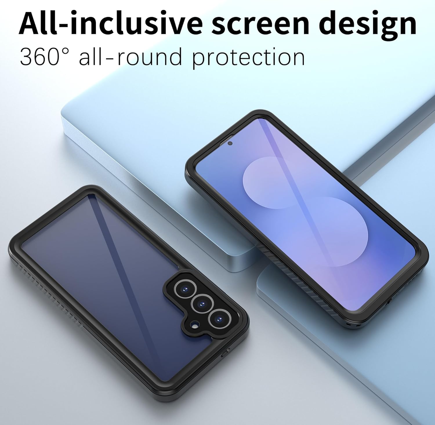 2. Full-body case with 360 degree protection, Built-in screen protector prevents scratches and scrapes.
