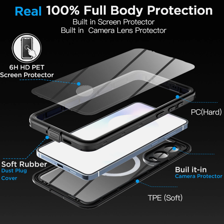 2. Full-body case with 360 degree protection, Built-in screen protector prevents scratches and scrapes.