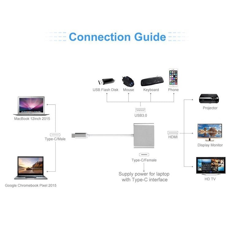 Type C to USB-C HDMI USB 3.0 Adapter Converter Cable 3 in 1 Hub For MacBook Pro