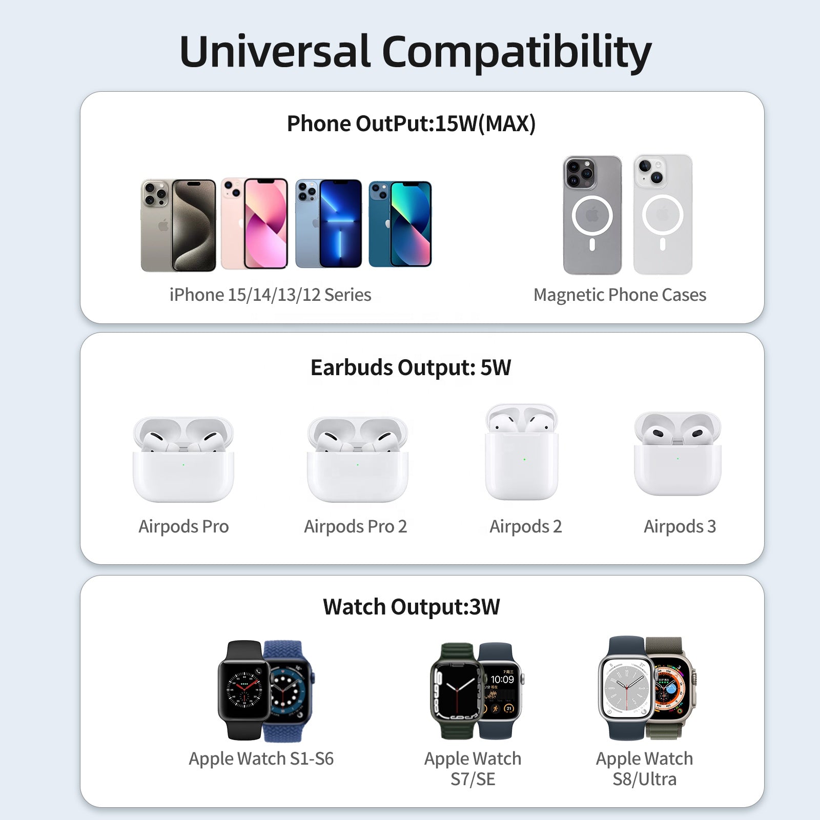 3. Watch output: 3W(supports all of Apple/Samsung Watches)