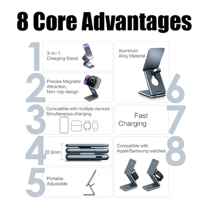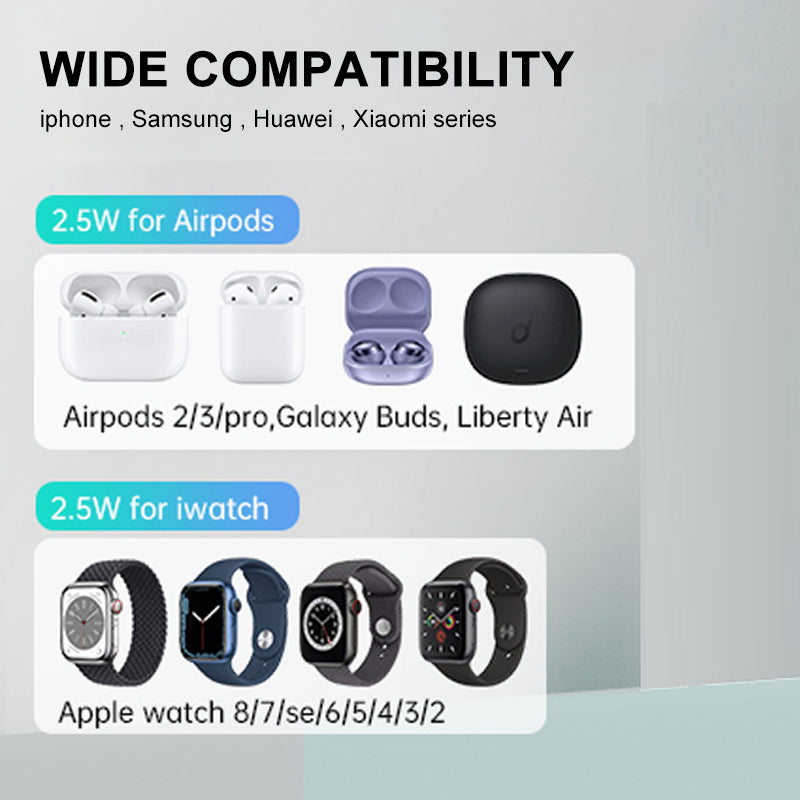 Wireless Charger 15W Fast Charger Station for Apple Samsung Watch iPhone AirPods