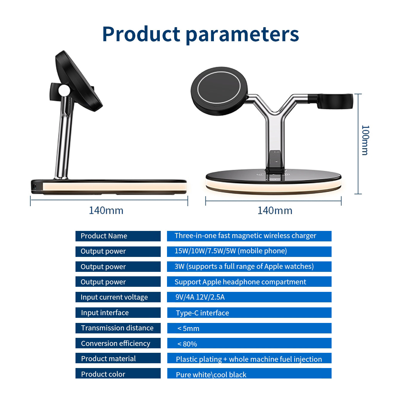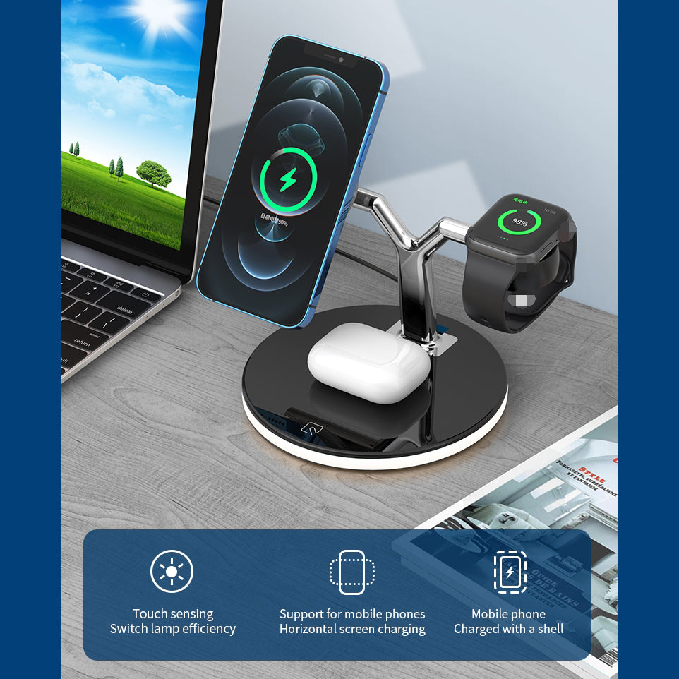 Wireless Charger 15W Fast Charger Station Lamp For Apple Watch iPhone AirPods
